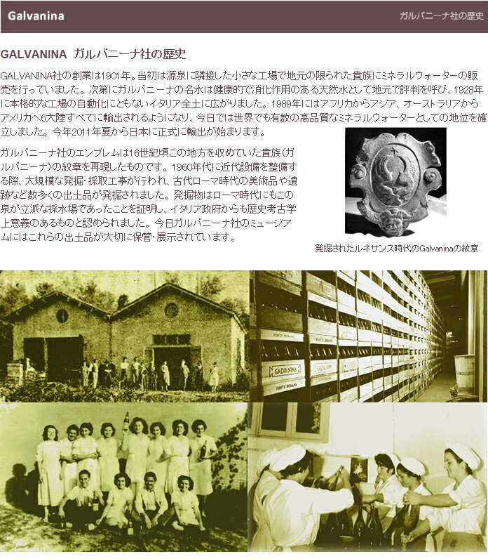 次第にガルバニーナの名水は健康的で消化作用のある天然水として地元で評判を呼び、1928年に本格的な工場の自動化にともないイタリア全土に広がりました。