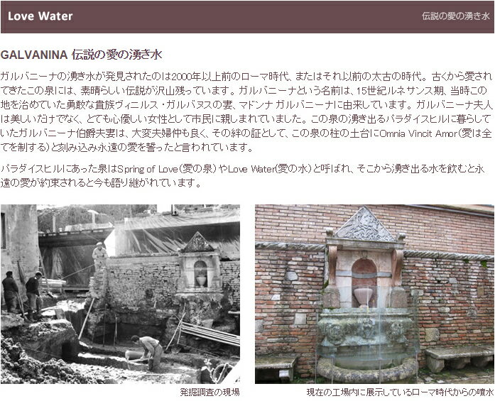・GALVANINA 伝説の愛の湧き水 ガルバニーナの湧き水が発見されたのは2000年以上前のローマ時代、またはそれ以前の太古の時代。