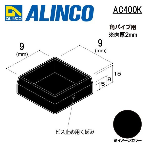 アルインコ 樹脂キャップ (かぶせ) 角パイプ用 1個 寸法:9×9 ブラック,アルミ型材,アルミ,ALINCO 品番:AC400K ※合計1万円以上で送料無料
