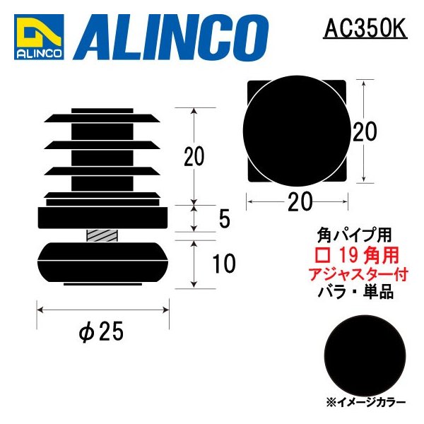 アルインコ 樹脂キャップ角パイプ用 アジャスター付 ■サイズ:19角用 ■カラー:ブラック ■品番:AC350K ■ALINCO/アルインコ 製 ※個人宅には配送できません。