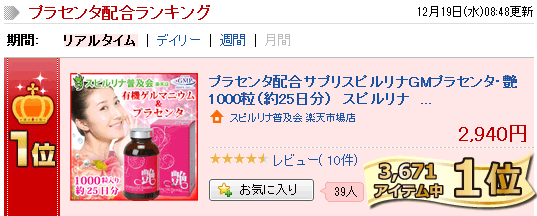 | Shop Name | ショップ | スピルリナ普及会 楽天市場店 |