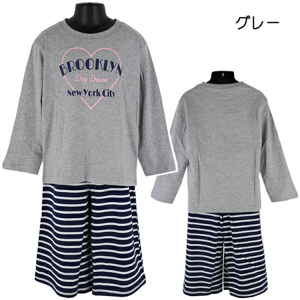 綿100% BROOKLYN ハート 長袖×ガウチョパンツ 7分丈 子供 女児 天竺 パジャマ 上下セット GLANDIT 130-150cm【送料無料】